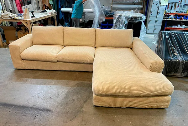Je bank krijgt precies de hoes die bij haar hoort. Wij maken alles met de hand, op maat, tot het écht goed zit.
