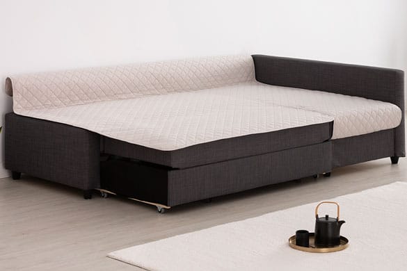 De bankbeschermer is gemaakt van hoogwaardig, duurzaam materiaal dat zacht aanvoelt en optimaal comfort biedt. Het onderhoud is eenvoudig, zodat je bank altijd schoon en fris blijft. Deze hoes is perfect als de bank gesloten is en kan ook worden aangepast als de bank in bedmodus staat. Beschikbaar in 16 kleuren, zodat er altijd een variant is die perfect bij jouw interieur past.